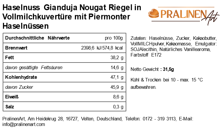 Edler handgemachter Nougat Riegel Haselnuss Gianduja Nougat | Belgische Vollmilchschokolade - Schokoriegel mit Haselnuss Gianduja Nougat | Nougatriegel