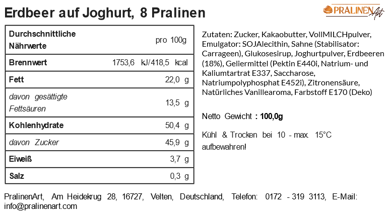 Erdbeere auf Joghurt Pralinen | 8 Stück | Pralinenart