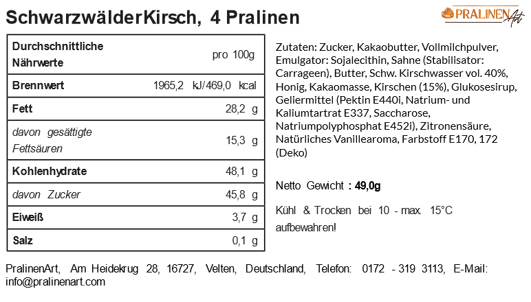 Schwarzwälder Kirsch Pralinen | 4 Stück | SchweizerZartbitterschokolade